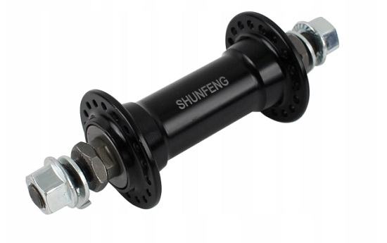 Materiał korpusu: aluminium Kolor: czarny Mocowanie piasty: nakrętki Łożyska: kulkowe Szerokość łęczenia z widelcem OLD 100 mm Długość osi: 140 mm ( stalowa ) ¦rednica osi: 3/8″ (9,5 mm) Waga: 215 g