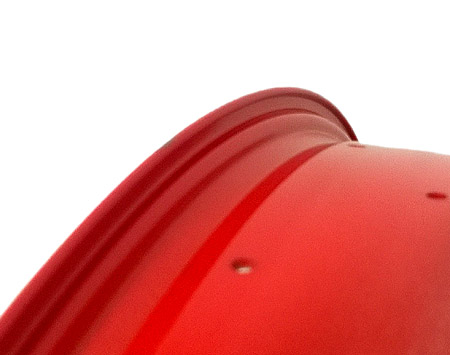 Felga posiada wzmocnienie rantu ze "schodkiem" ułatwiajęcym ustawienie drutu opony w równej odległości od rantu.