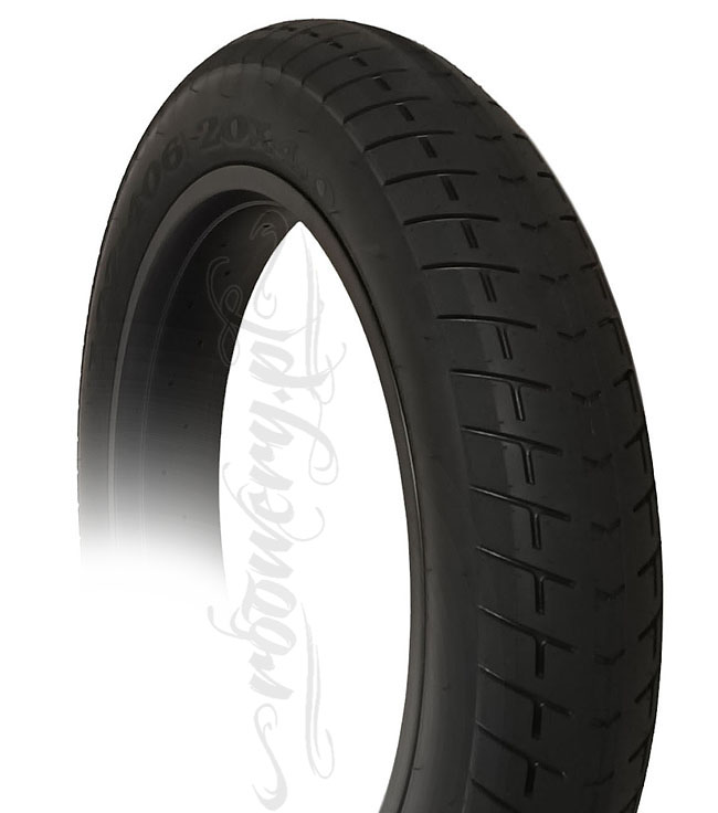 Opona rowerowa na asfalt pedelec e-bike 25 ready Mini - FatBike 20 x 4.0 102 - 406 Semi Slick Moto czarna cichy , gruby i gładki bieżnik kierunkowy na gładkie nawierzchnie W zależności od felgi - opona będzie mieć następujęce przykładowe wymiary po zamontowaniu i napompowaniu: